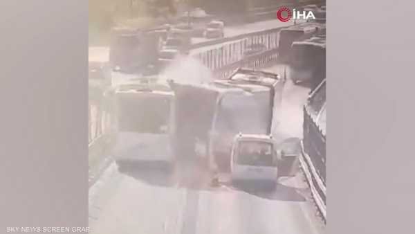 رصدت كاميرات المراقبة حادثا مروعا وسط إسطنبول أدى إلى مقتل شخص وإصابة أكثر من خمسين شخصا.