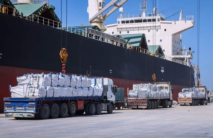 وقد بلغت حركة الصادر من البضائع العامة 25081 طن تشمل : 15044 طن يوريا و631 طن رمل و4300 طن اسمنت و886 طن كلينكر و4220 طن مولاس.