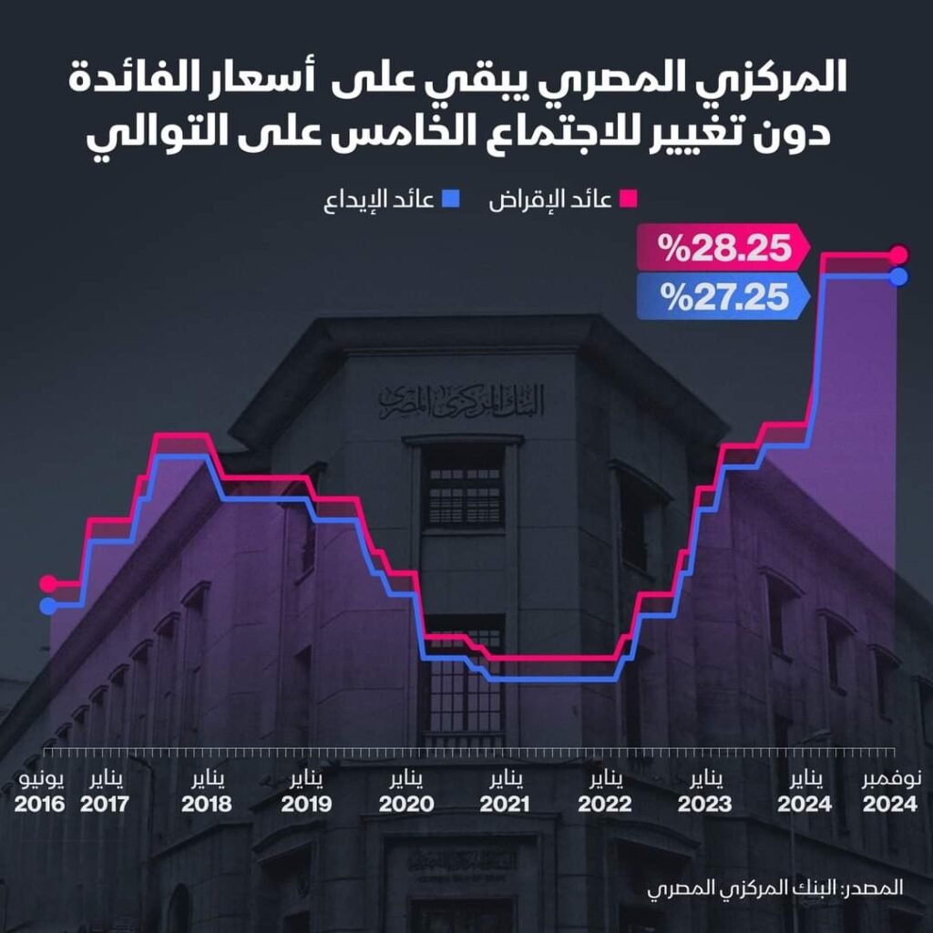 بالإنفوغراف: المركزي المصري يبقي على أسعار الفائدة دون تغيير للاجتماع الخامس على التوالي