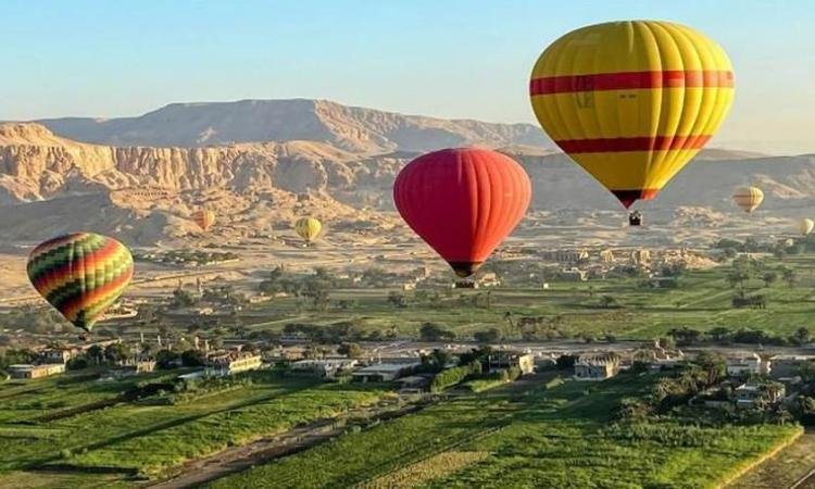 شهد مطار البالون الطائر بالبر الغربي بالاقصر، تحليق نحو 70 رحلة بالون طائر أقلت على متنها أكثر من 1750 سائحا بمختلف الجنسيات حول العالم، في نزهه ترفيهية في سماء الأقصر لمشاهدة المعابد والمقابر والملوك والملكات فوق سماء الأقصر في أجواء طبيعية من البهجة والفرحة بين العاملن في القطاع السياحة.