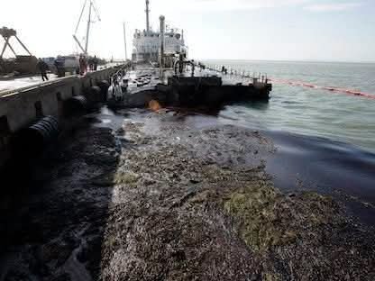 تسبب تسرب نفطي هائل في تلويث ساحل البحر الأسود في روسيا بعد تدمير ناقلتين نفطيتين قديمتين في عاصفة شديدة. وغطى النفط أكثر من 60 كيلومترا من الخط الساحلي بين تيمرايوك وأنابا.