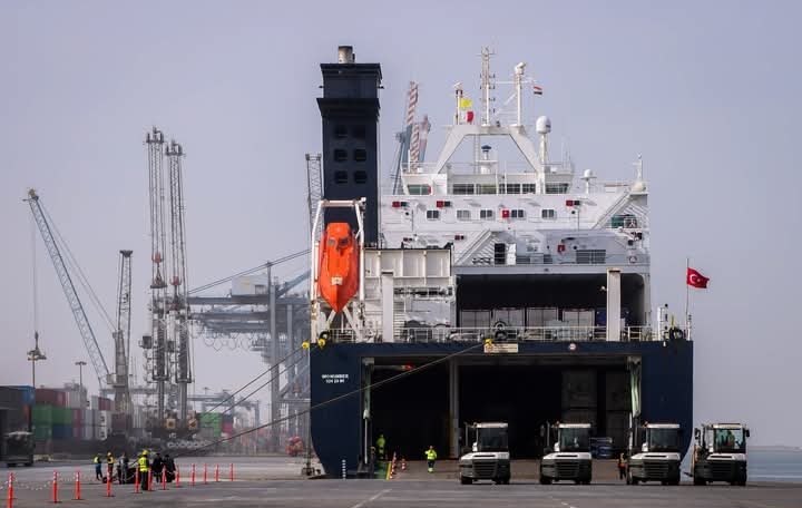 فى إطار توجيهات السيد الفريق مهندس كامل الوزير نائب رئيس مجلس الوزراء للتنمية الصناعية وزير الصناعة والنقل باتخاذ كافة الإجراءات الخاصة بعرض وتوضيح الفرص الاستثمارية والتصديرية الواعدة للخط الملاحى لنقل البضائع ( الرورو ) الرابط بين مصر وإيطاليا عبر مينائى دمياط وتريستا ، وتلبية لدعوة اللواء بحرى أ.ح / طارق عدلي عبدالله رئيس مجلس إدارة هيئة ميناء دمياط للسادة أعضاء الغرفة التجارية بمحافظة دمياط لزيارة رصيف الرورو بالميناء ، إستقبلت هيئة ميناء دمياط محمد عبد اللطيف فايد رئيس مجلس إدارة الغرفة التجارية على رأس وفد رفيع المستوى ضم كبار أعضاء مجلس إدارة الغرفة و المستثمرين والمصدرين والتجار بمحافظة دمياط ، حيث كان فى استقبالهم السيد اللواء بحري أ.ح أحمد حمدى عبدالعزيز نائب رئيس هيئة ميناء دمياط ، والذى قام باصطحاب الوفد والتوجه إلى مقر الشركة المشغلة للمشروع بجوار رصيف الرورو والذى تتراكى عليه السفينة OLYMPOS SEAWAYS خلال رابع رحلة لها.