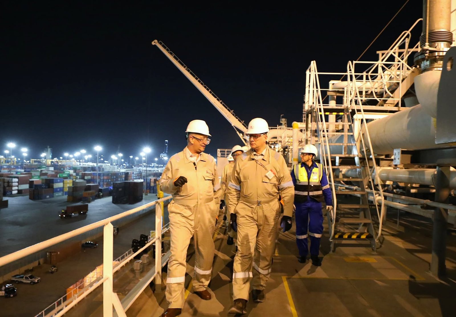 وخلال الزيارة، شهد المهندس / كريم بدوي مدى تقدم الأعمال الأعمال الفنية والتعديلات اللازمة للسفينة التي وصلت إلى ميناء الإسكندرية، ووجّه بأهمية تعجيل إتمام التجهيزات مع الالتزام الكامل بكافة اشتراطات السلامة والصحة المهنية وحماية البيئة. وأشار وزير البترول والثروة المعدنية إلى أن مصر أصبح لديها الآن ثلاث سفن تغييز، تعمل إحداها بالفعل بميناء سوميد بالسخنة، فيما يجري تجهيز السفينتين الجديدتين – من ضمنهما “Energos Power” – للربط على موانئ سوميد وسونكر بالعين السخنة، ضمن منظومة متكاملة تهدف إلى تنويع مصادر الإمداد وضمان استدامة تدفقات الوقود، لا سيما في ظل التحديات الإقليمية الجارية.